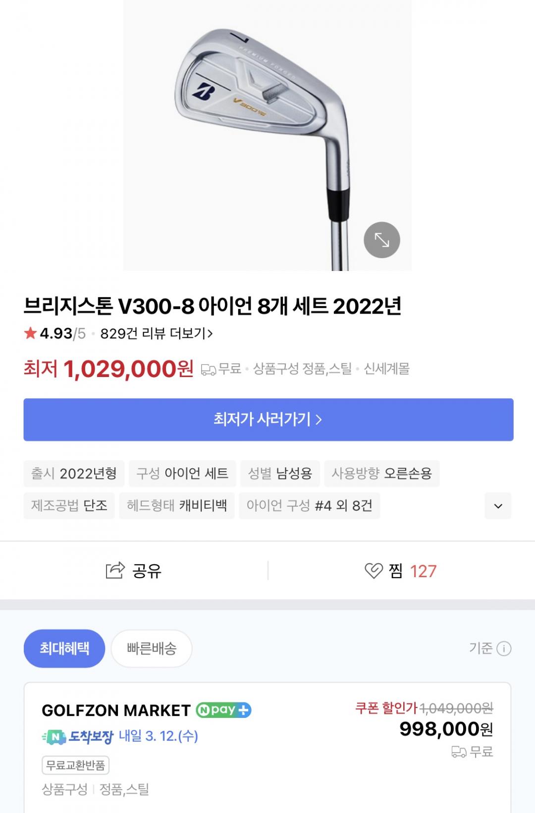 작년 이맘때 ak골프(오프라인)에서 v300 8 90만원이였으니