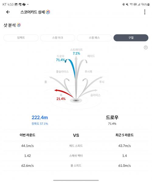 필드에서도 14번중 10번은 똑바로 갑니다.