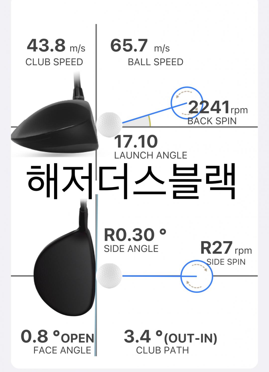 드라이버 64~66m/s, 스크린 240 필드 220(60정도 치는 듯), 7번 32도 48~50m/s 145, 50도 웻지 100