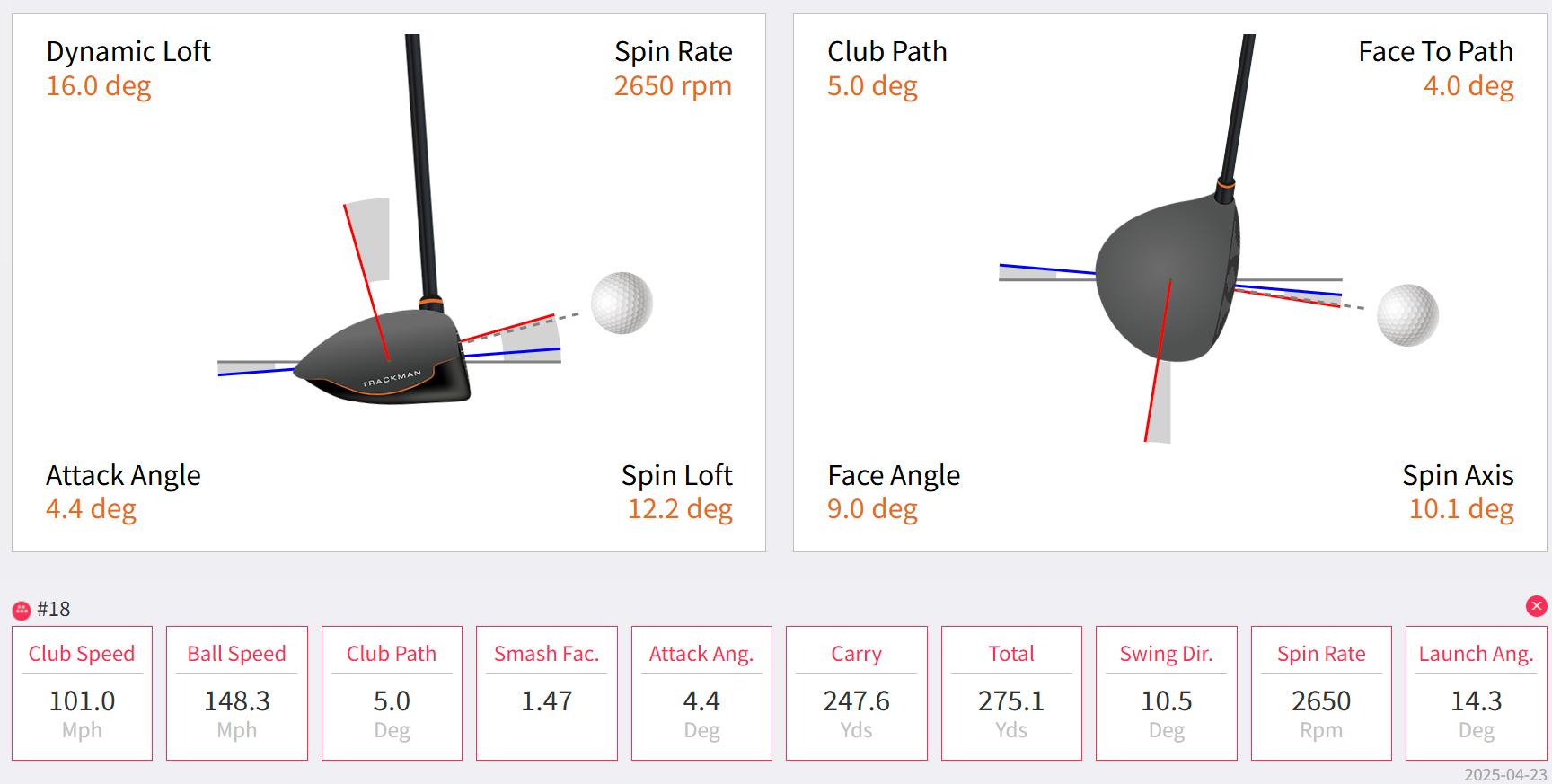 그러다 보니 부가 효과로 드라이버도 거리가 오르긴 올랐습니다.