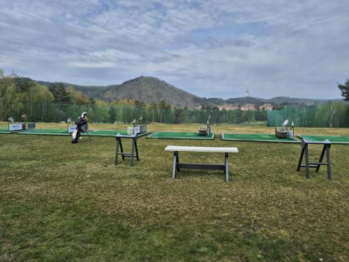 자리 : 약 20여개, 티높이가 고정, 티높이가 높고 낮은 자리가 있으니 잘 보고 자리잡거나 별도 고무티사용추천. 자리 바로앞 잔디이용절대 불가