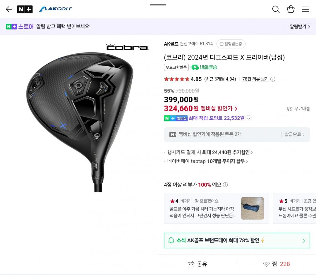 햔재 에어로젯 9도 SR스탁 사용 중인데요, 헤드 디자인 보고 반했던 다크스피드X가 꽤나 할인 중이네요.