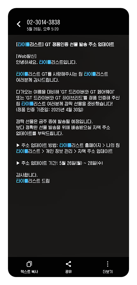 참~이런거 보면 타이틀리스트는 고객을 잘챙기는거 같네요