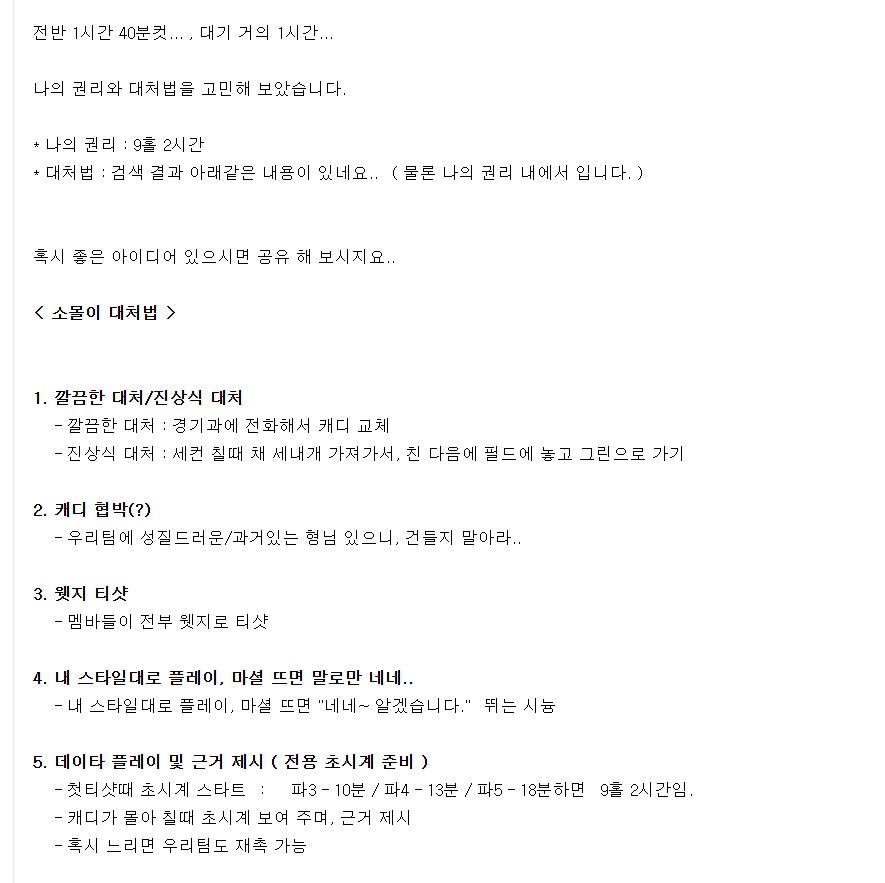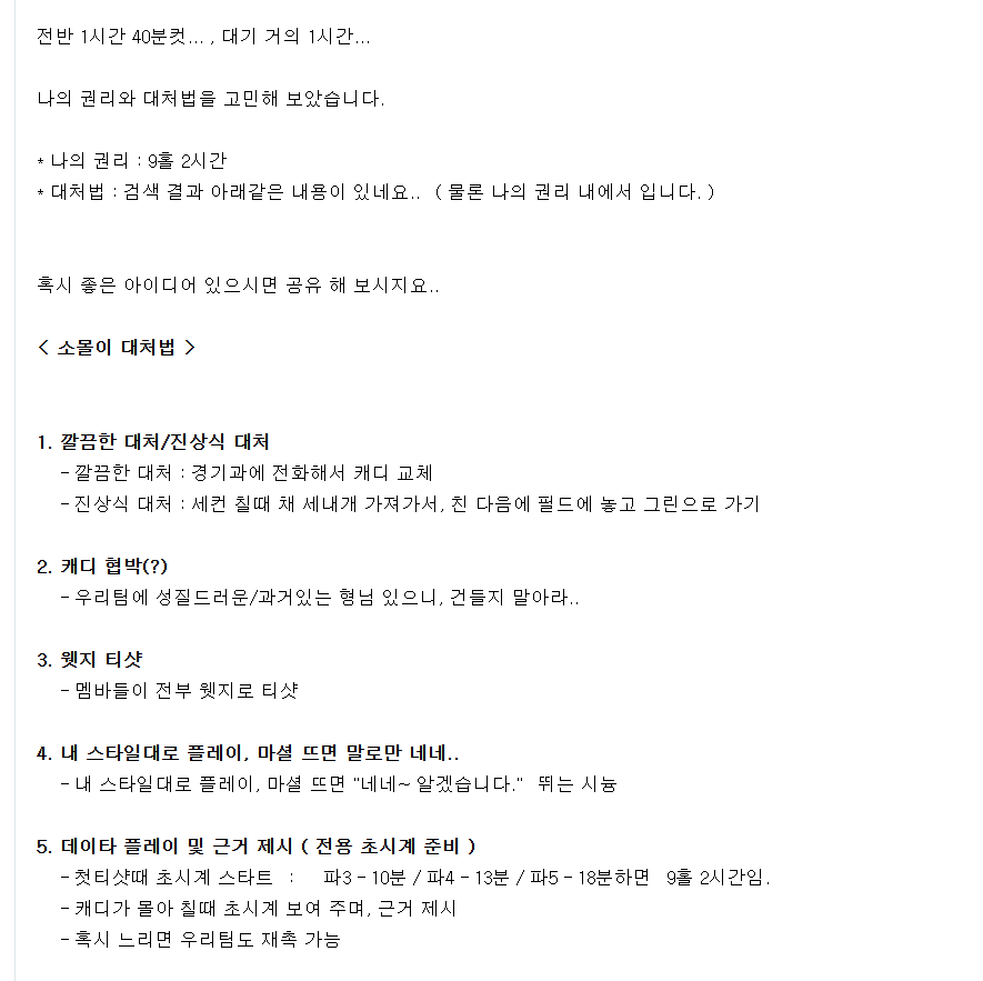 경기과나 캐디에게 항의할만한 문제다 라고 수없이 적어놨는데요?