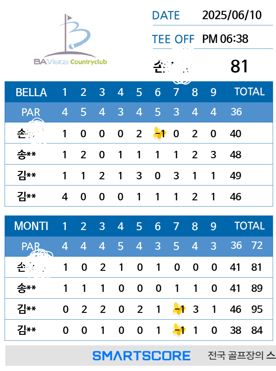 저도 블루티 하고싶은데 동반자들 모두 그런 비거리도 아니라... 스트로크 내기 상황에 혼자 블루가기도 좀 애매모시기 하고...