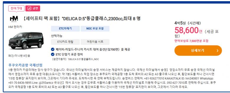 헉 저도 이번 여름 후쿠오카 여행때 HM 렌터카로 타비라이에서 예약해놨는데요. (kr.tabirai.net)