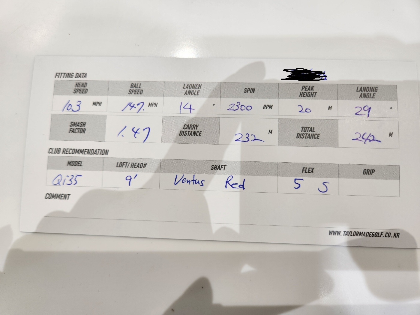 기존에 쓰던 샤프트는 벤투스 블랙6s였습니다.