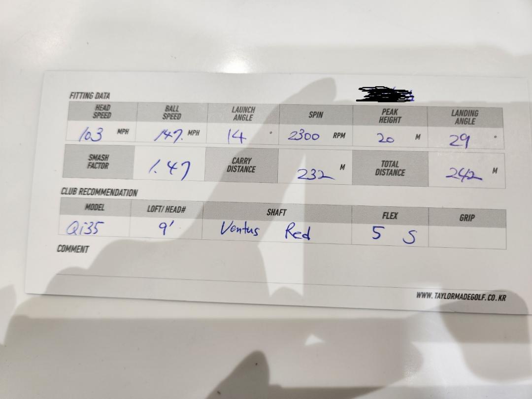 기존에 쓰던 샤프트로 쳐보니 헤드스피드는 90마일 후반대가 나왔고