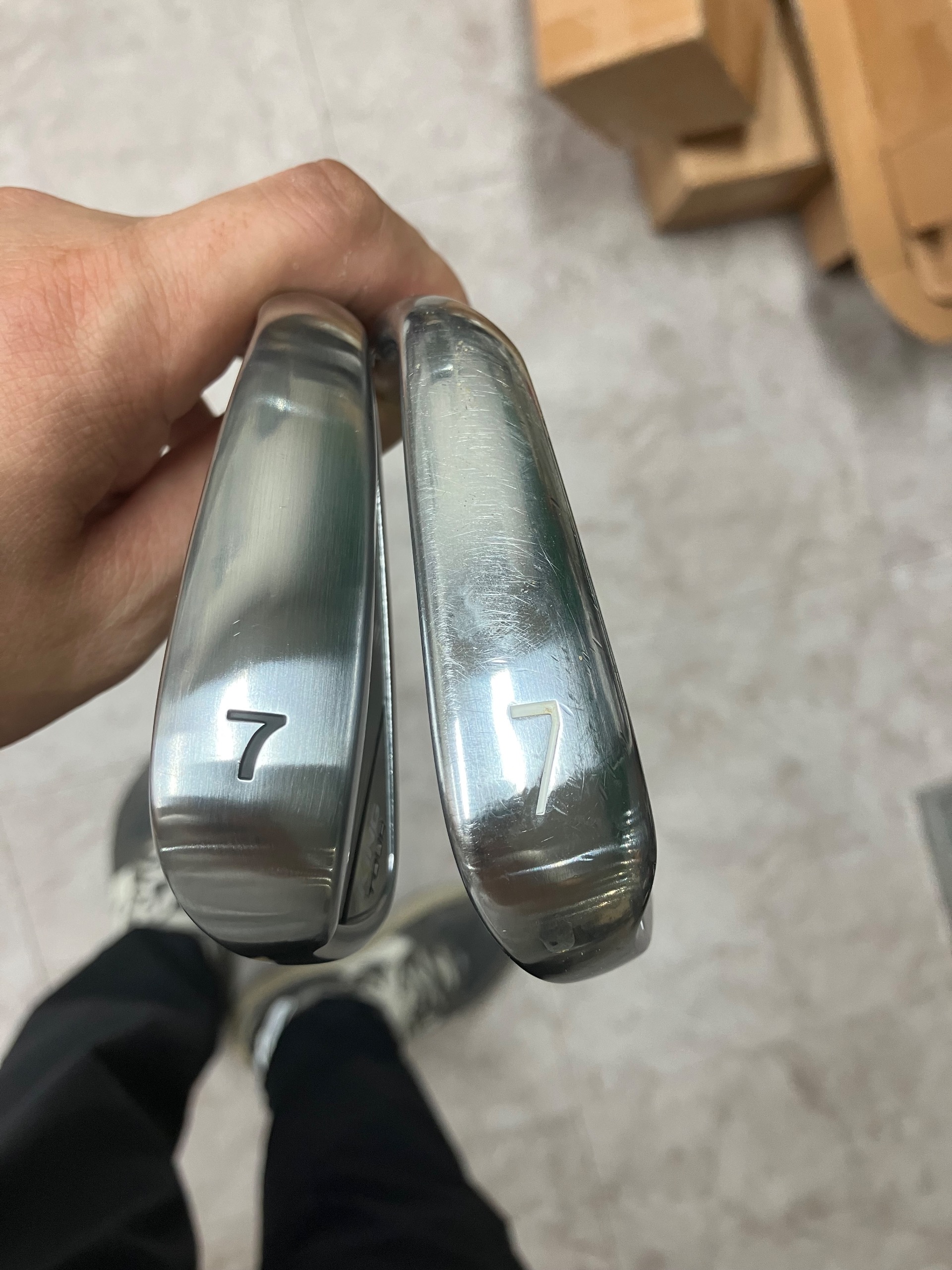 사진처럼 (7번기준) 살짝 길이가 짧습니다. 근데 타감과 타구음이 저래도 거리는 또 잘납니다. Jpx보다 5미터이상 더 나갑니다. 이건 샤프트도 달라졌고 (기존 nspro 950 -> s200r) 몸 컨디션도 다를테니까 참고만 해 주세요.