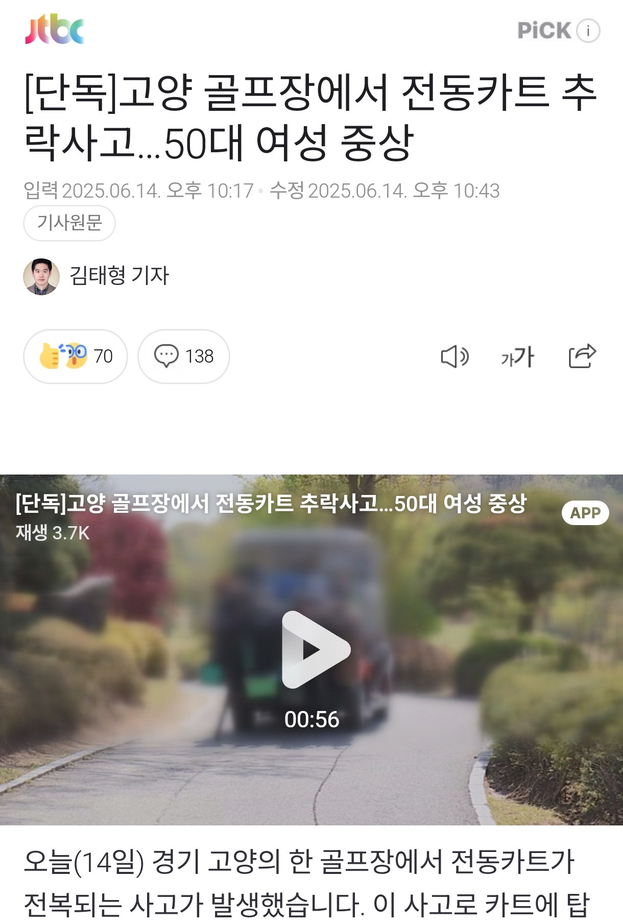 어제 제가 7번홀에 가고있었는데 캐디가 무전 듣고 비명 지르더라고요.