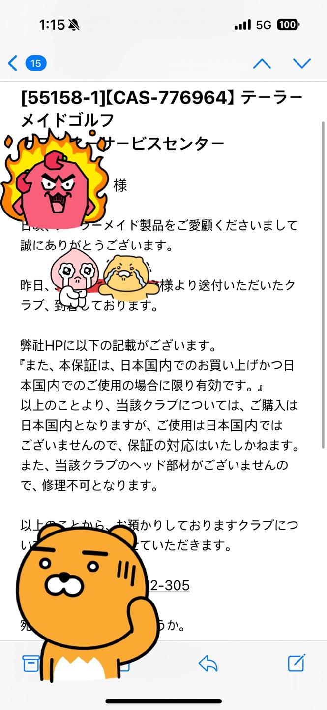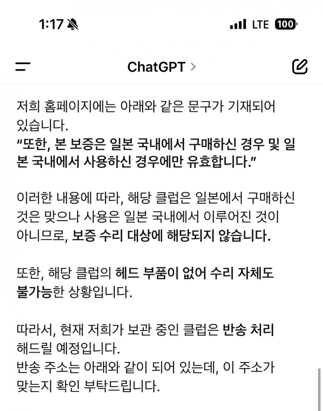 "일본 국외에서 사용하다 파손된 상품 a/s 불가" 이 말이 참 우스운 말이네요.. 이 말대로라면 우리나라에서 산 제품을 해외여행가서 골프를 치다가 한국 가져와도 A/S 안해준다는 말과 같은데.. 참 말이 안되는 문구네요.. 국외배송비까지는 책임 안줘준다는 것 까지는 이해되지만..