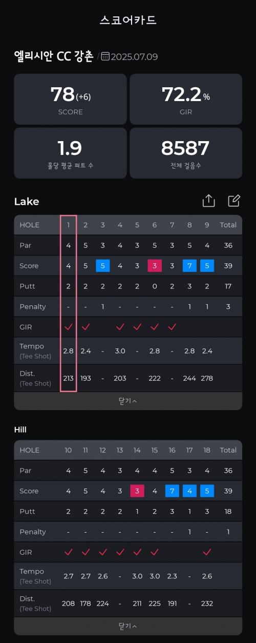 세홀 남기고 2오버라 좀 더 쪼아서 이븐까지 가보고 싶은 욕심에 무리한게 좀 아쉽긴해요.