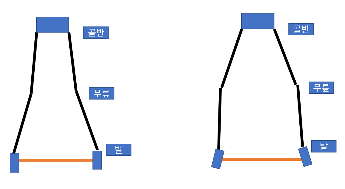 어느순간 뭔가 느낌이 와서 같은 간격의 발을 벌릴때 오른쪽 그림처럼