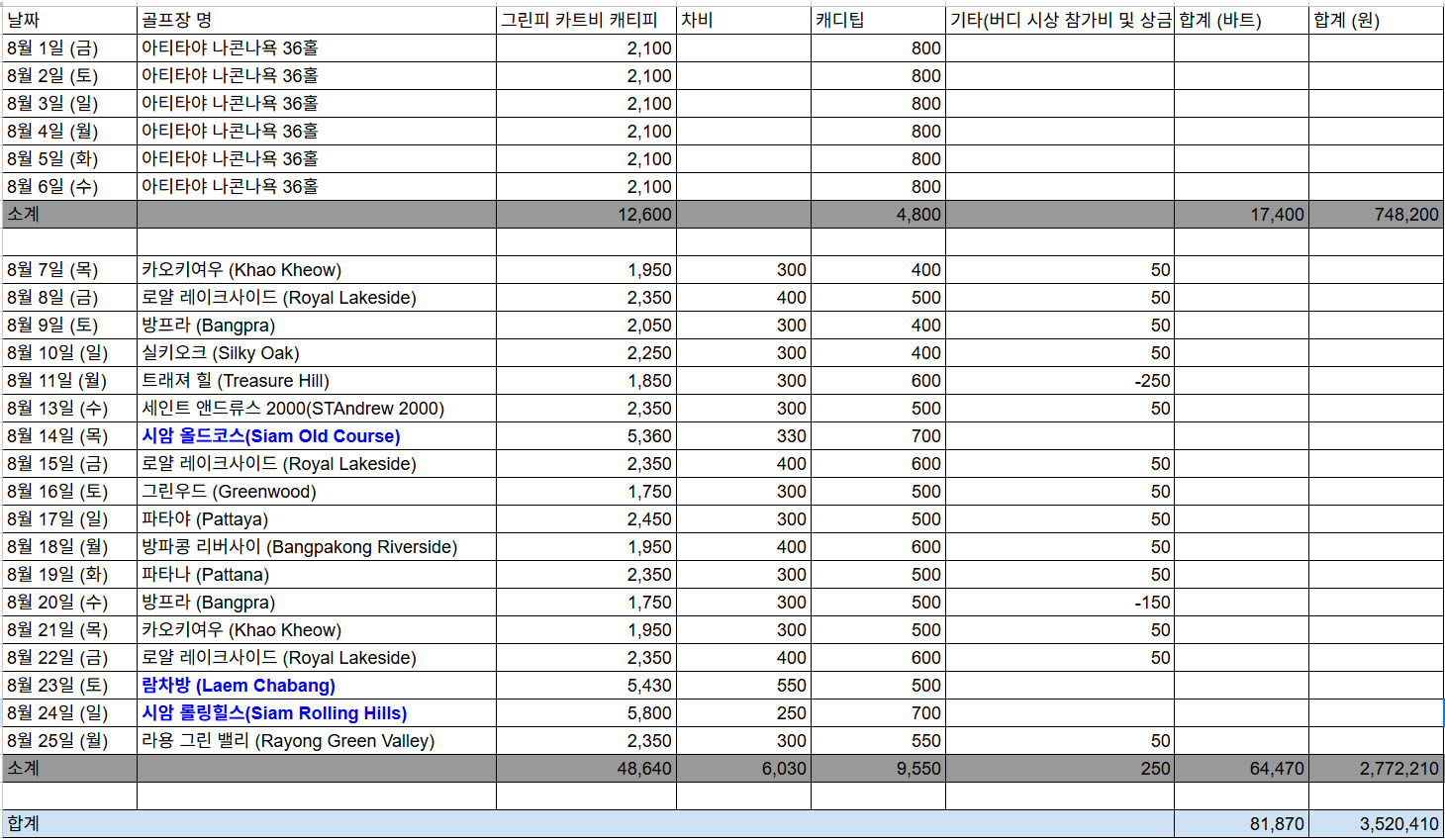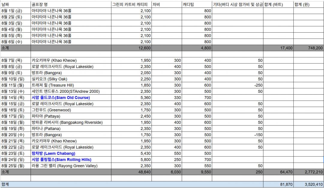 토요일이 제 생일이라 시원하게 쓰고왔습니다. 라운딩 비용은 총 350만원 정도 들었네요.