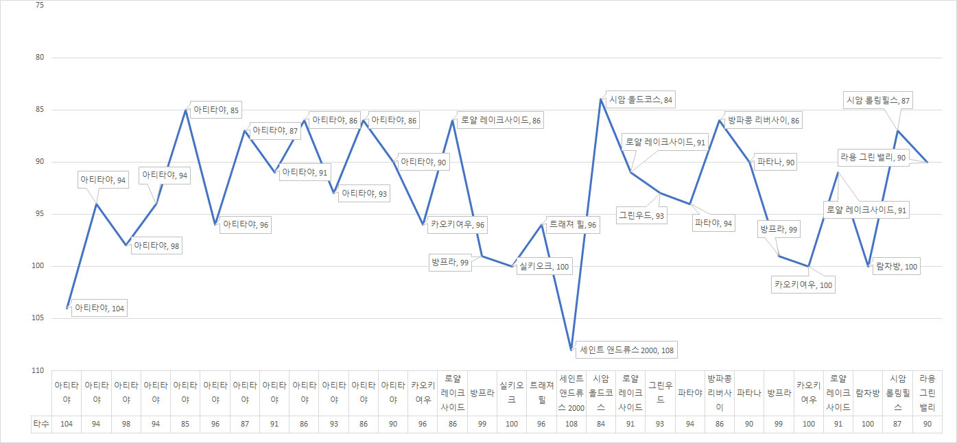 파타야에서 계획대로라면 80대후반 90대 초반을 안정적으로 치면서