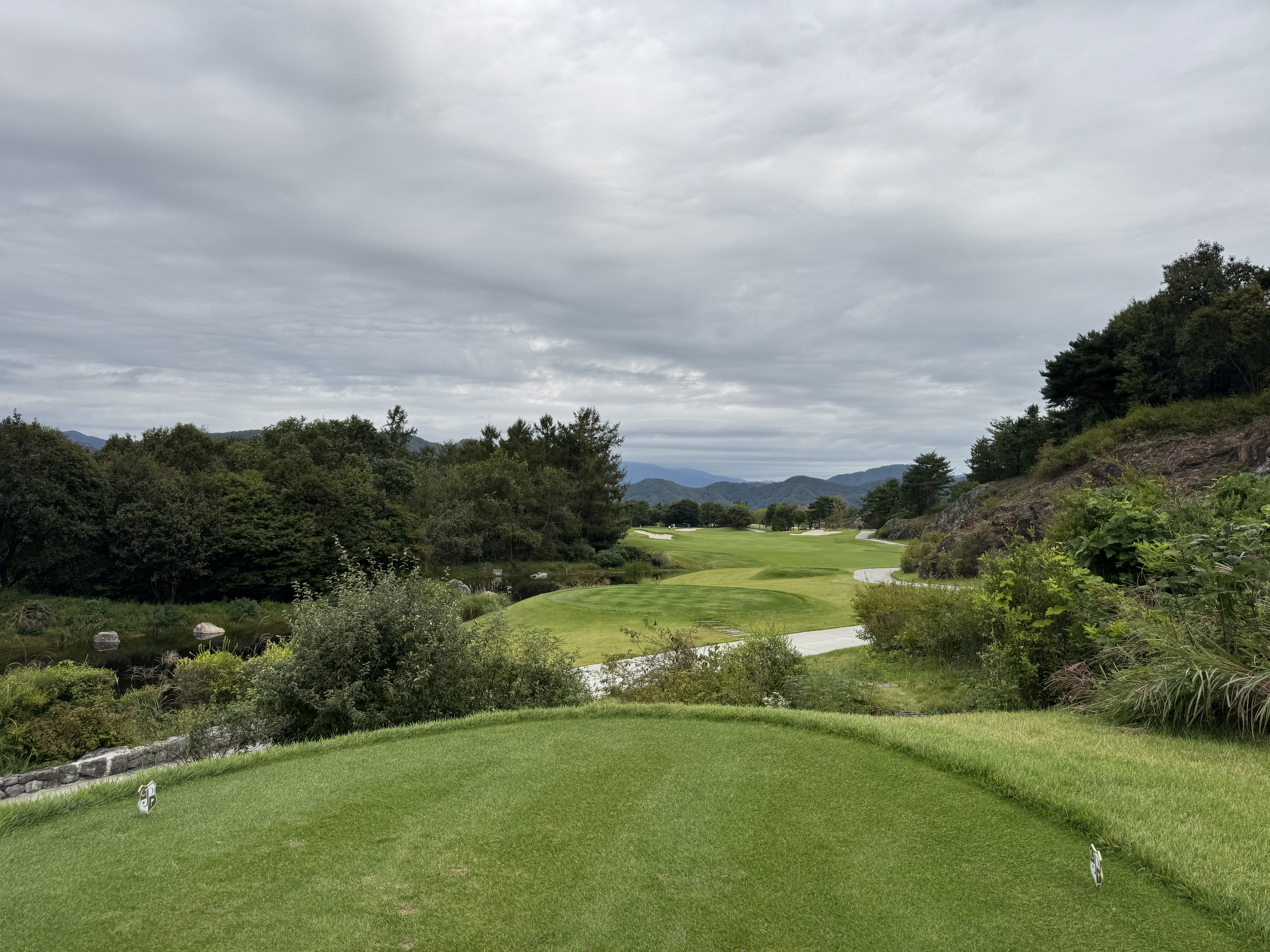 이곳은 페어웨이는 중지, 그린은 벤트그래스인 전형적인 한국형 골프장이고 티박스에서는 전체 홀이 다 눈에 보이지만 막상 페어웨이에 가보면 업다운이 심해서 그린이 잘 보이지 않는 홀이 많았습니다. 그래서 티샷은 상대적으로 편하지만 세컨 샷은 조금 불편한 경우가 많았습니다.