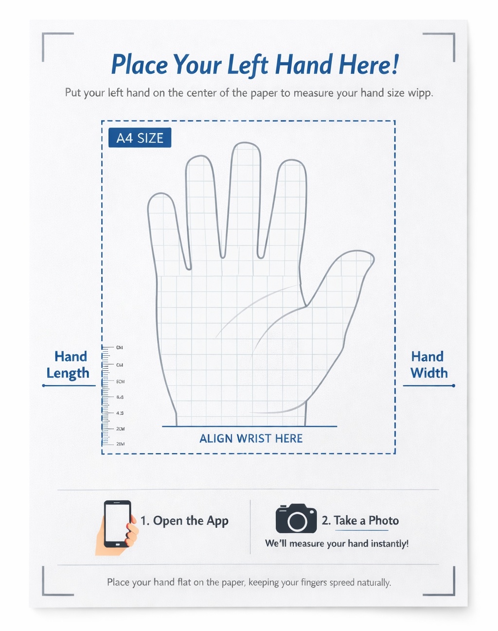 요즘은 기술이 좋아져서 A4 용지에 손 올려 놓고 사진을 찍으면 자동으로 측정이 되는 기술이 있어요.