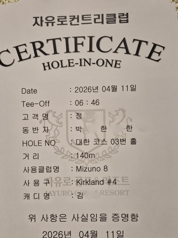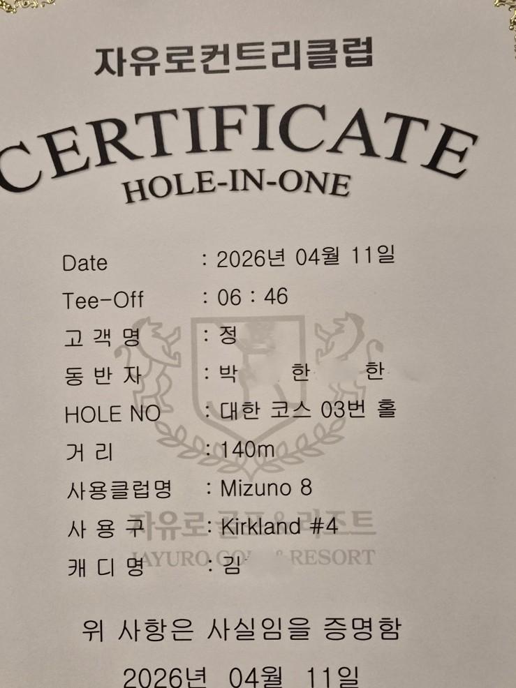 와...홀인원이라니...대단합니다 |