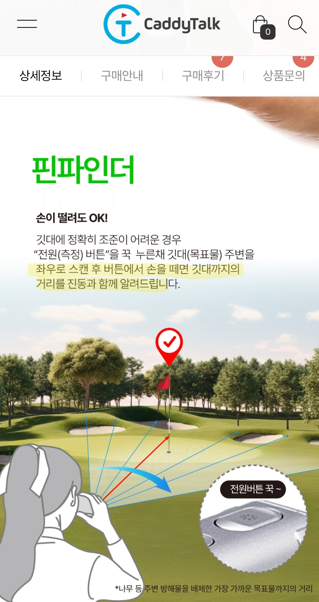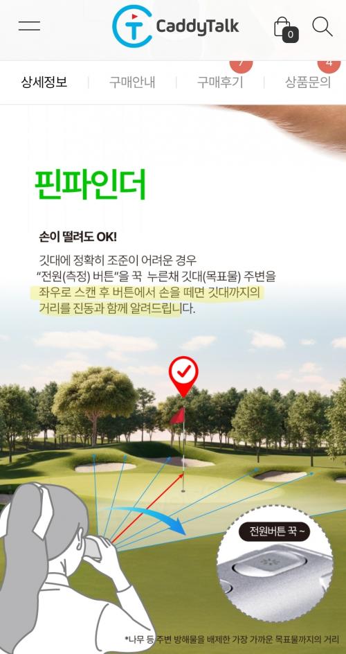 설명 상으로는 핀을 기준으로 좌에서 우로 스캔을 하고 떼면 스캔 범위 중 가장 가까운 목표물의 거리를 알려 준다는 거 같은데요. 그럼 핀의 거리가 나오지 않을까요? 버튼에서 손을 떼기 전 마지막 위치를 인식하는 건 아닌 것 같습니다. | ||