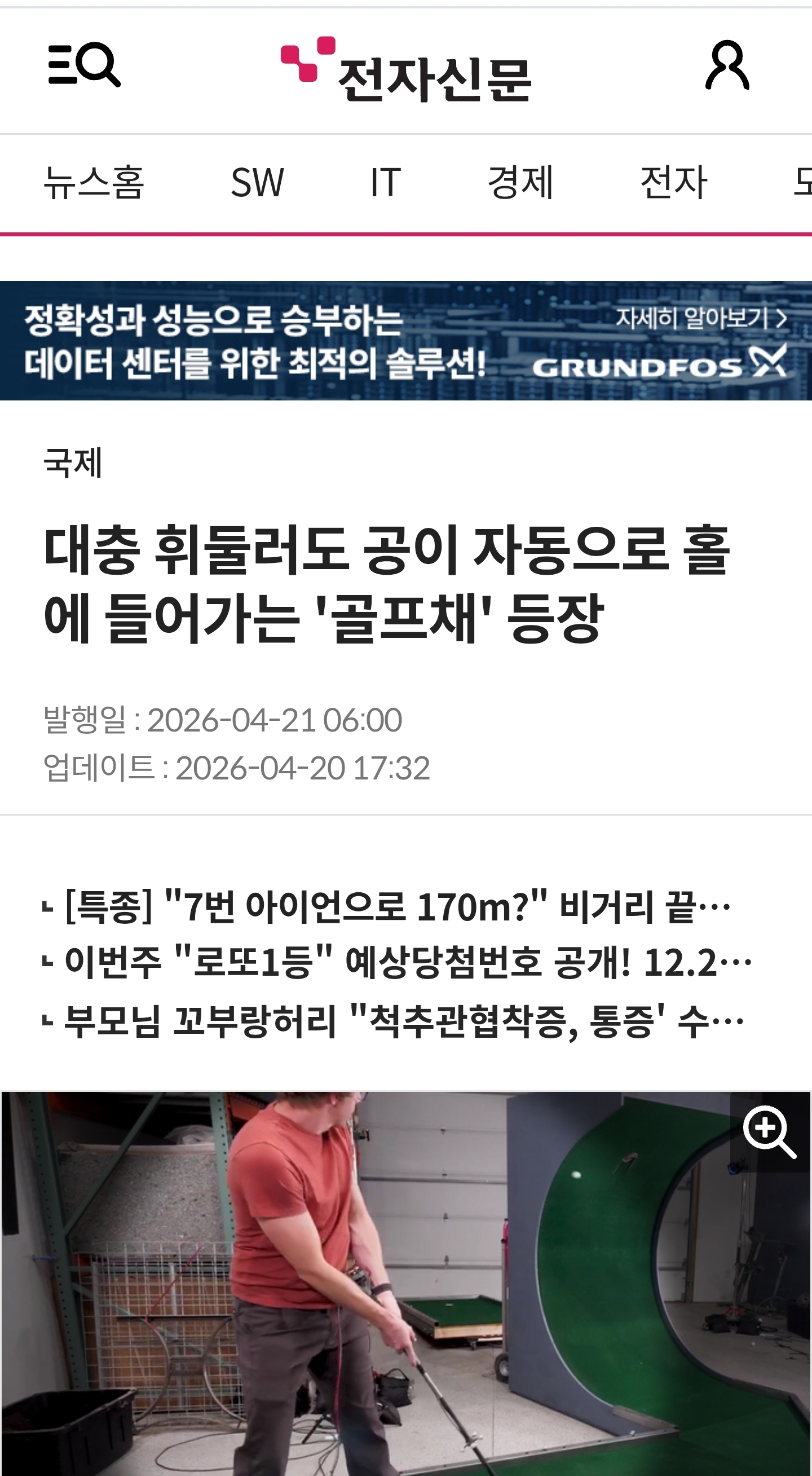 실험실에서 대충 퍼팅을 하면 퍼터에 모터가 달려 있고 카메라가 인식해서 계산하여 정확하게 퍼팅할 수 있게 헤드가 돌아간다고 합니다.