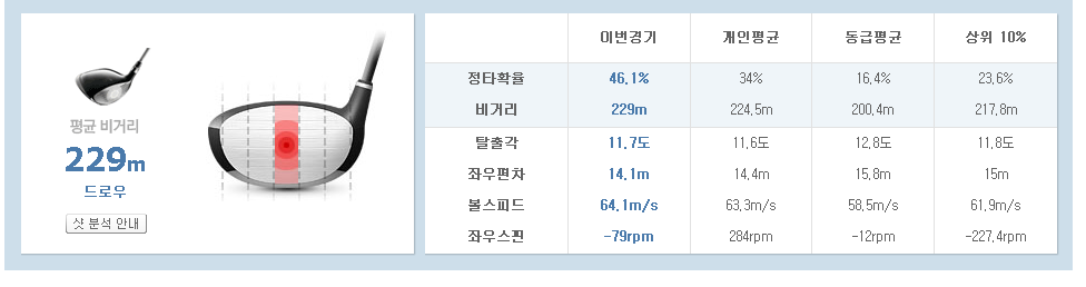 보통 페이드였는데 구질이 드로우로 바꼈어요. 평균비거리도 늘었고.. 슬라이스 걱정없이 때릴수 있어서 좋네요.