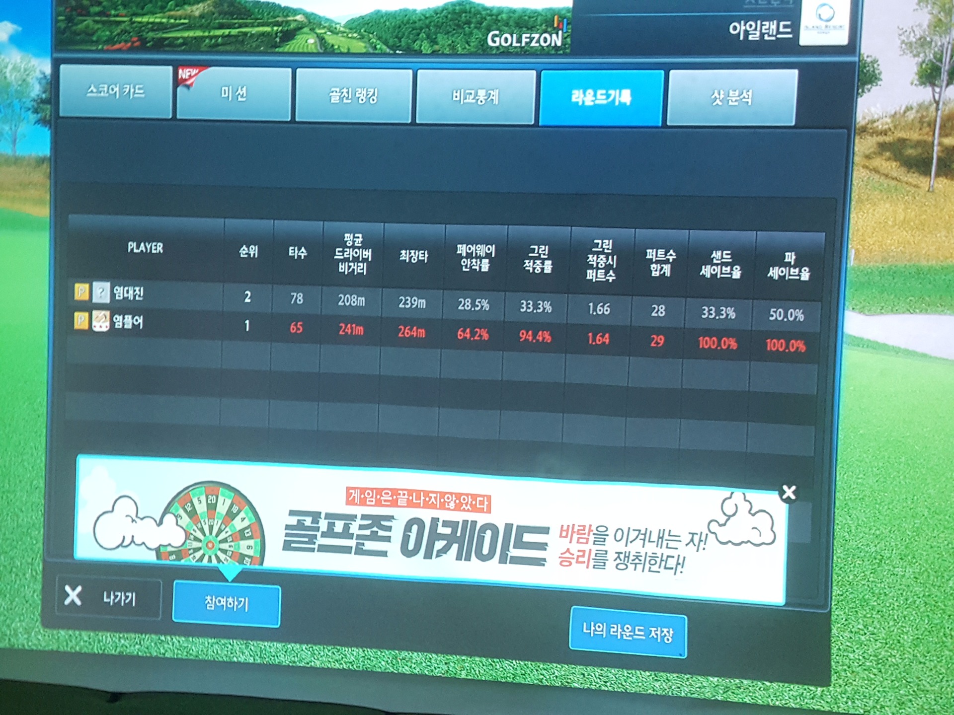 재밌네요 ㅎㅎ 드라이버 비거리가 좀 줄고