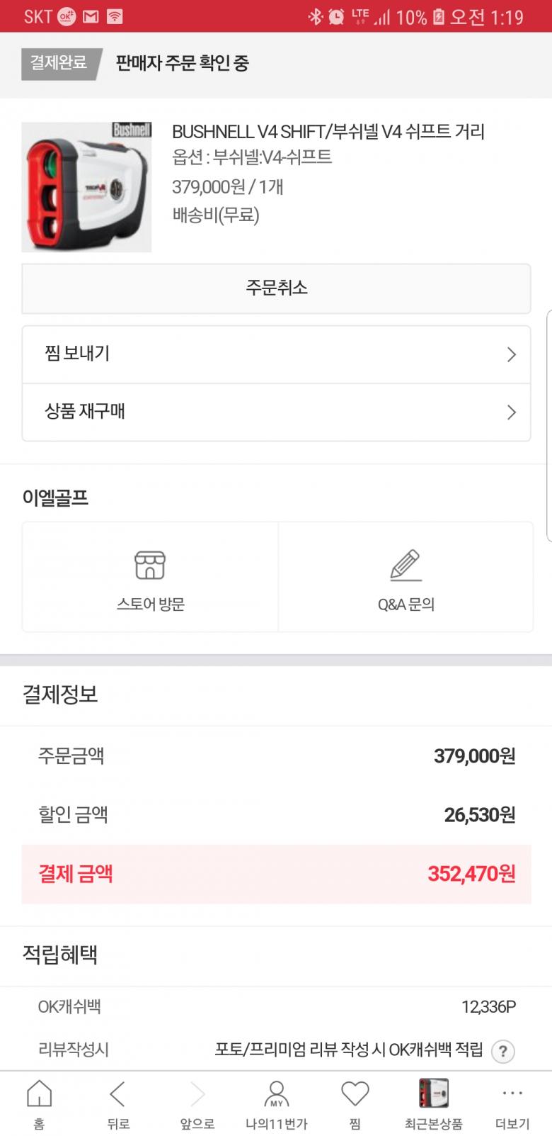 얼른 취소하고 다시 주문했습니다ㅎㅎ