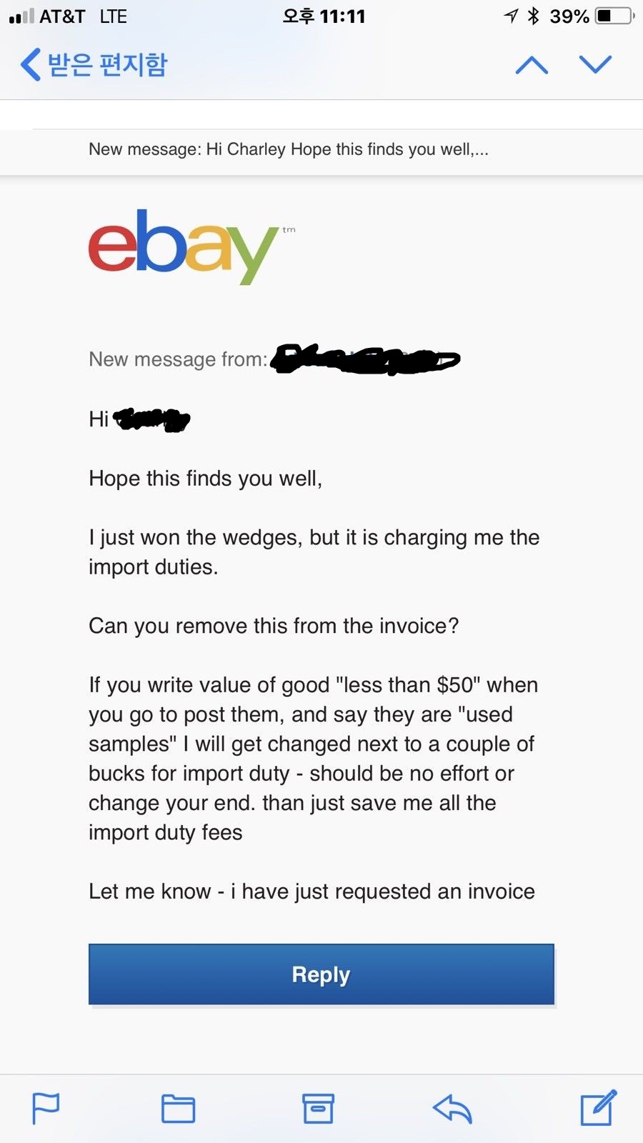 이베이에서 최근 관세부가품목 한 서너개 사고..