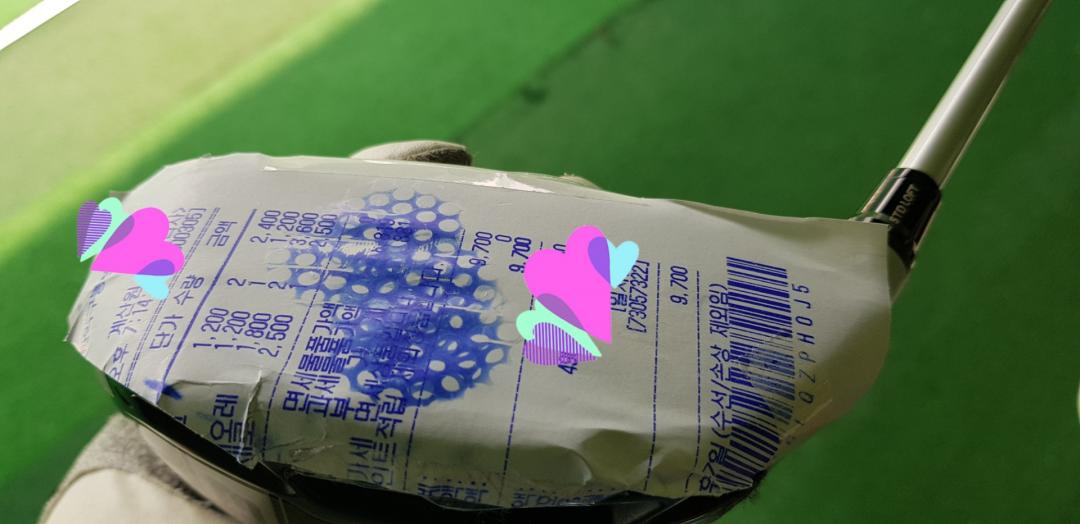 간식 사먹고 받은 영수증을 대충 오려 붙이고 드라이버를 몇 번 정도 쳐보니 타점 확인이 돼서 좋았습니다. 중앙에서 살짝 바깥에 맞는 것 같았습니다. 이날은 큰 편차 없이 약훅 스트레이트 약슬라이스가 번갈아 나왔습니다. 좀 안쪽에 맞혀볼까 해서 간격도 좁혀봤는데 안쪽엔 정말 안 맞네요 ㅎㅎ