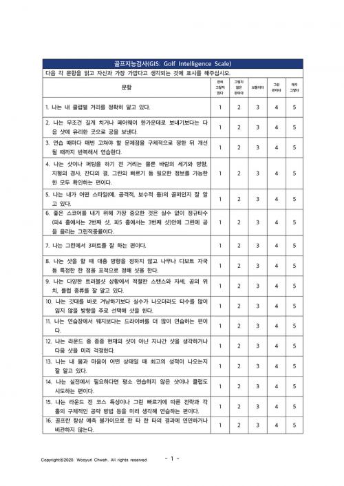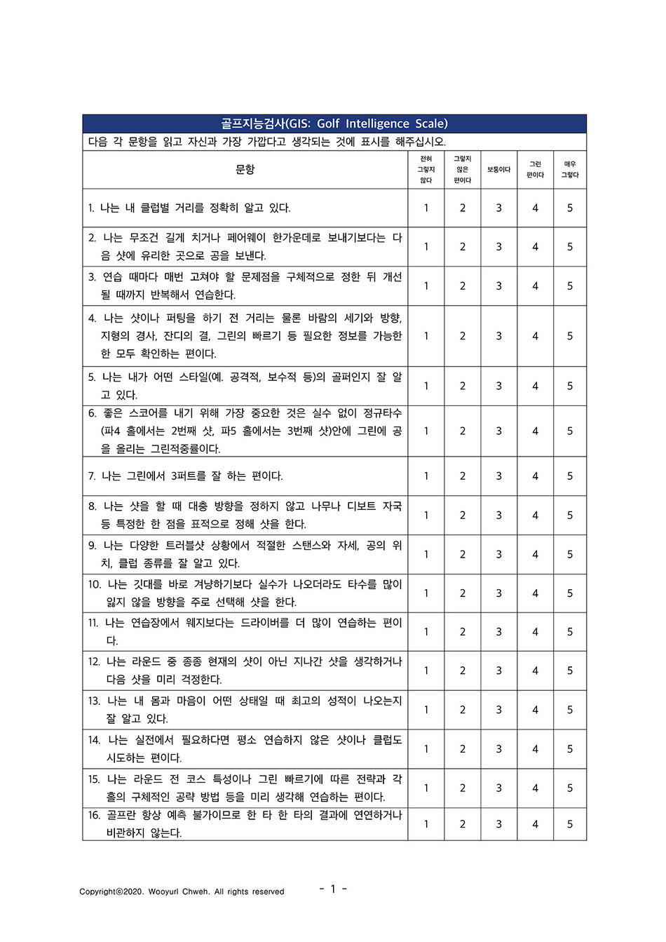 암튼 찾아서 해봤더니, 제 골프지능은 딱 100 일반수준으로 나오네요.