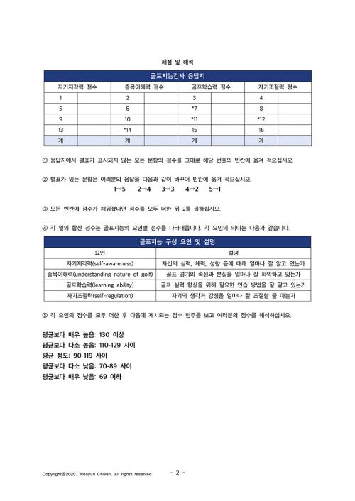 와.. 골프 지능보다.. 아래 점수표 점수 구하는게 힘든것 보니.. 저는 일단 지능자체가 떨어지나봐여.ㅠ.ㅠ | ||