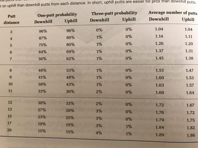 이건 대회 그린에서의 데이터이고 퍼팅라인 직선인경우라면 프로는 95퍼센트는 넣을겁니다.