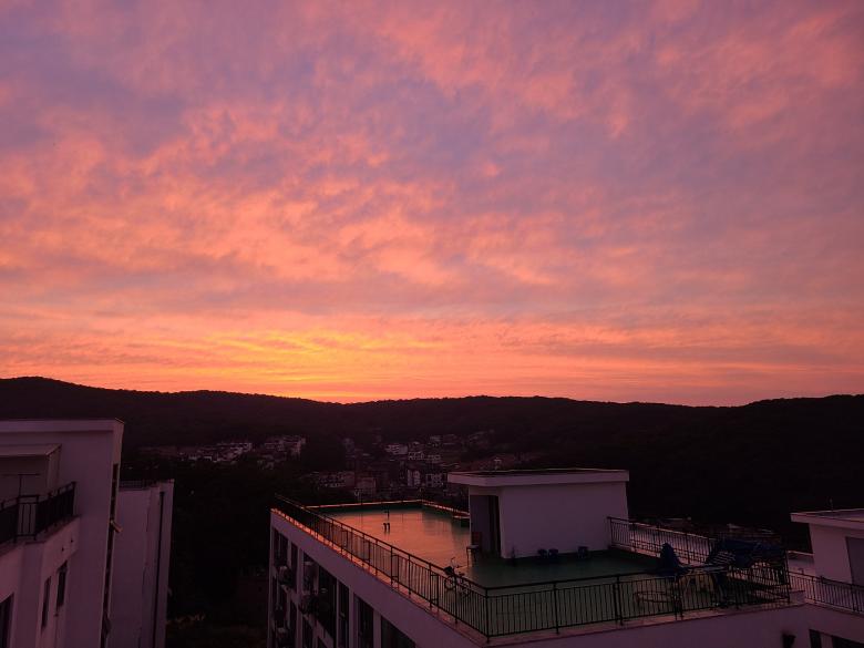 며칠 전 어두워질 시간에 연습하고 있는데 갑자기 조금 환해 지더라구요  노을 때문이었습니다 장마 때문에 한동안 못 봤는데...