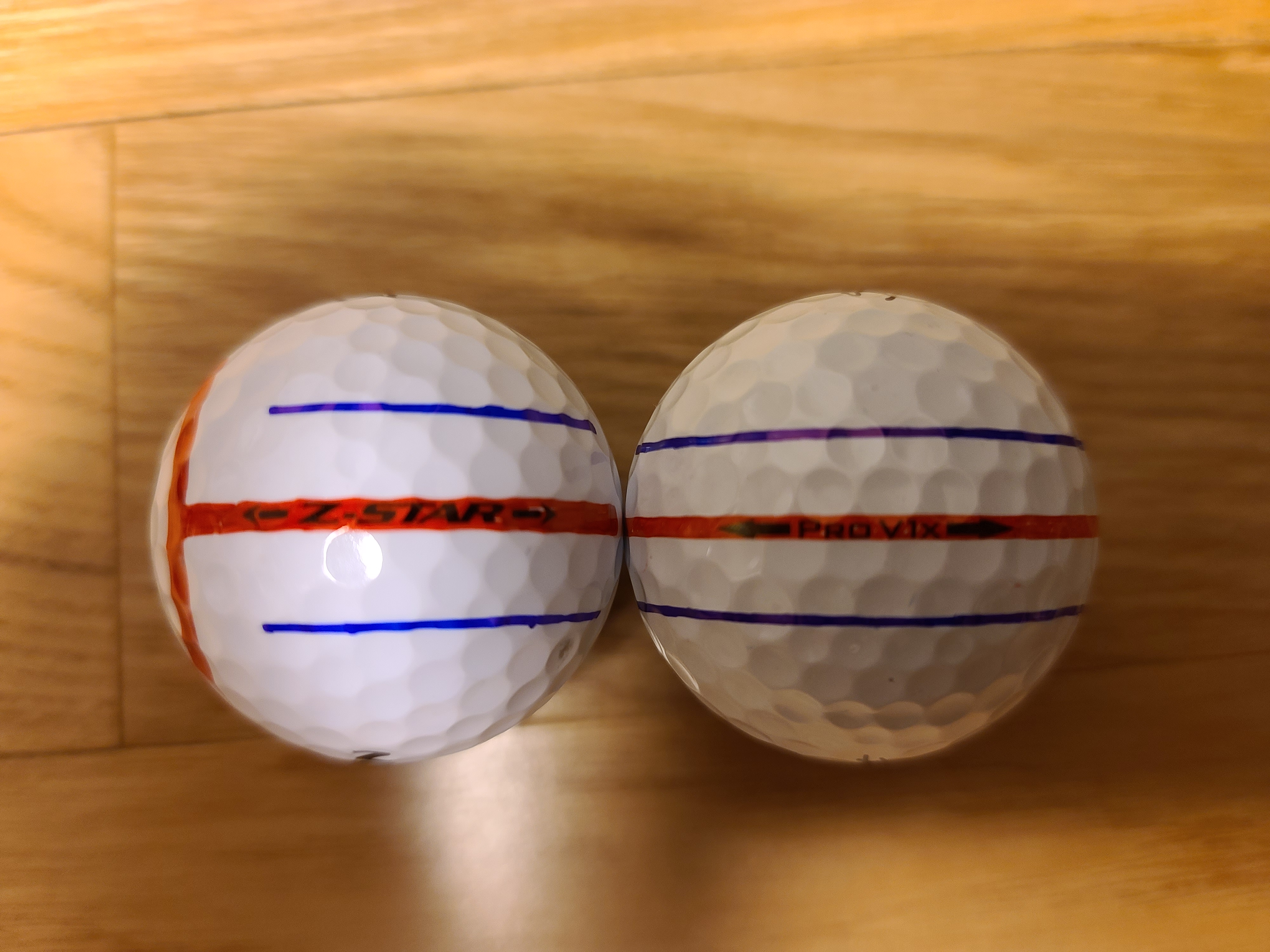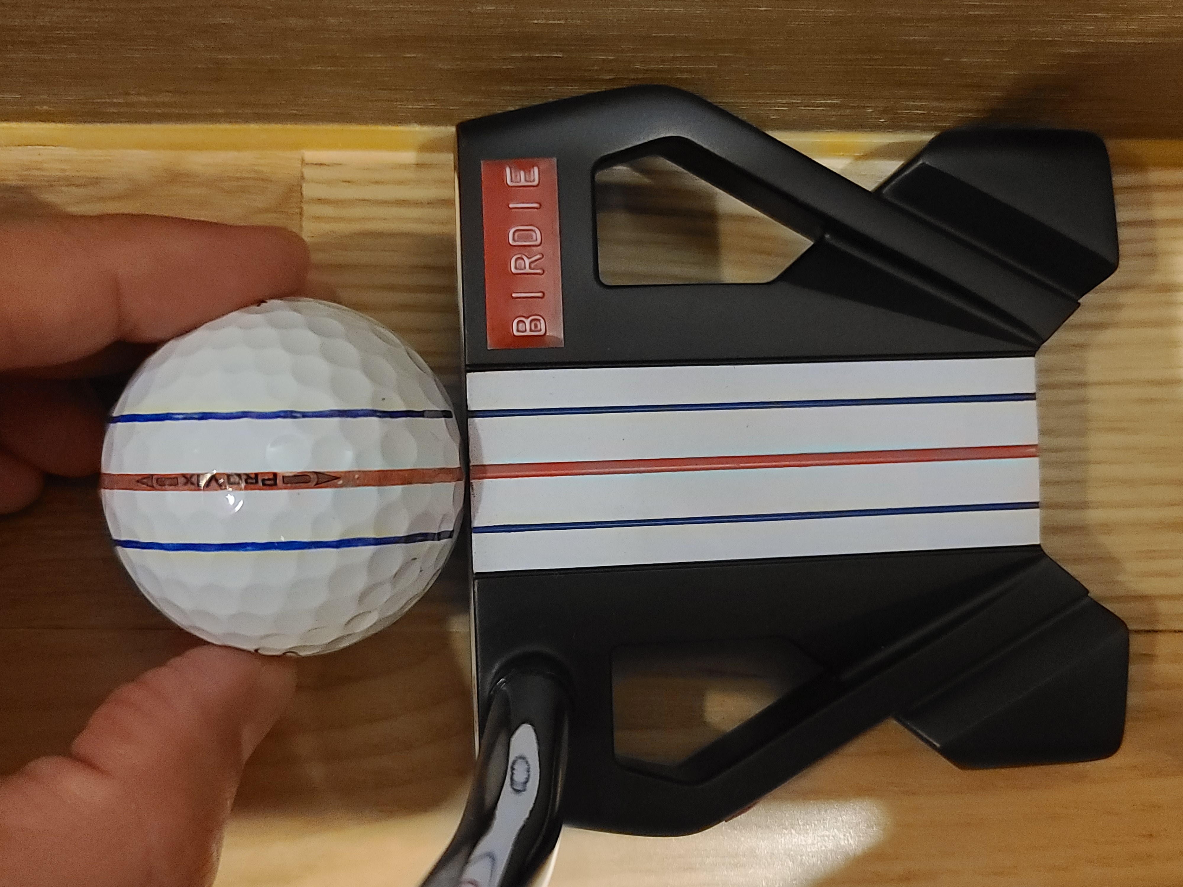 첫째, 볼라인 간격이 좀 멀어요. 그래서 트리플트랙 퍼터와 쓸때 라인이 정교하지 않고