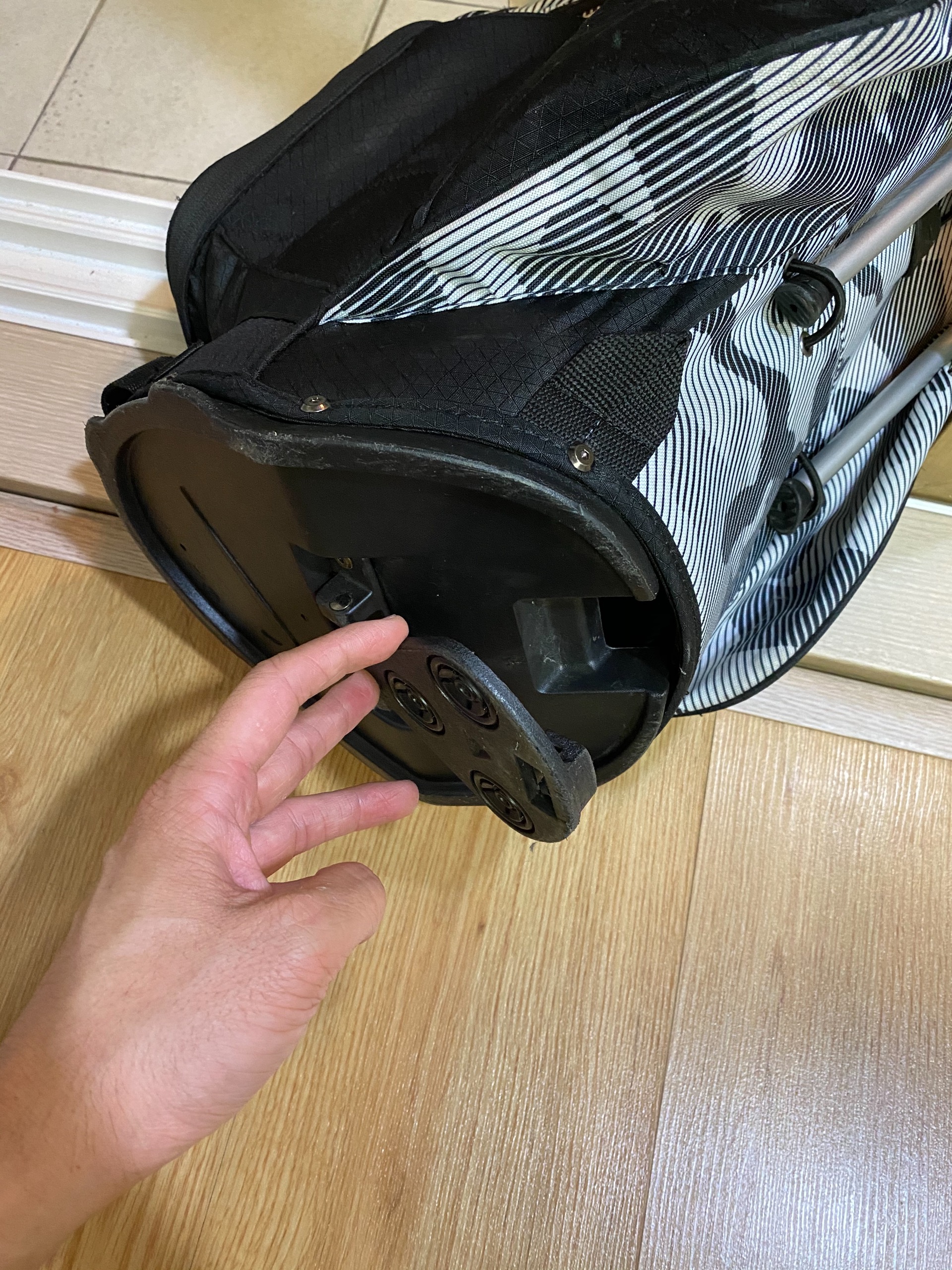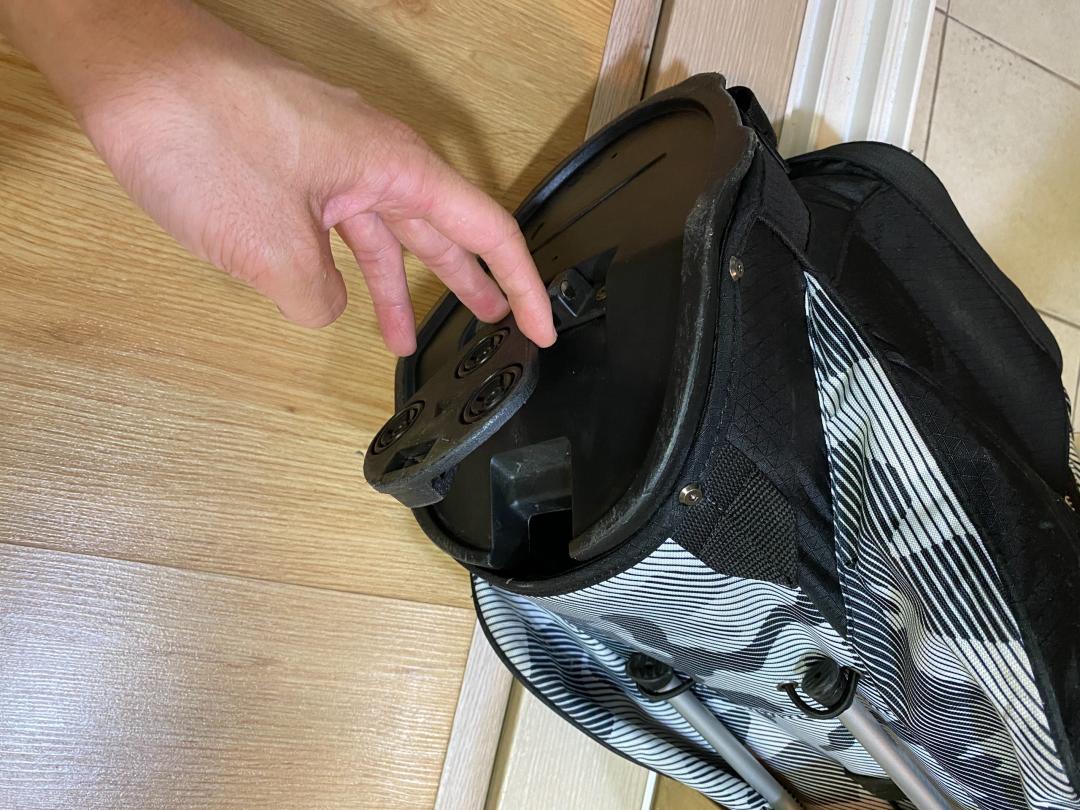저부분은 위로 밀어서 다리를 펼쳐주는 역활을하는데  길어서 없어지기 어려운 부품아닌가요? 가방마다 다르겠지만 가방상단에 스텐드가 모이는지점에 튀어나온부분은 없는지 한번 확인해보셔요~