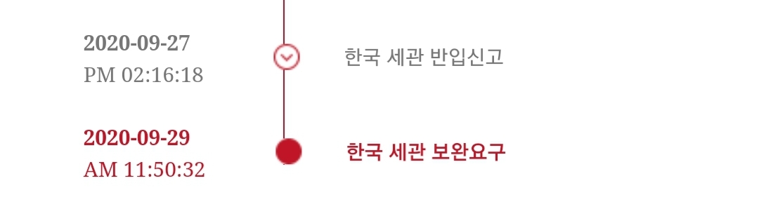 한국 도착 및 관세 청구 10/14