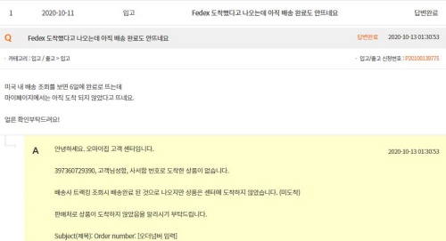 다시 오x이집 1:1 문의에 올려놨습니다.