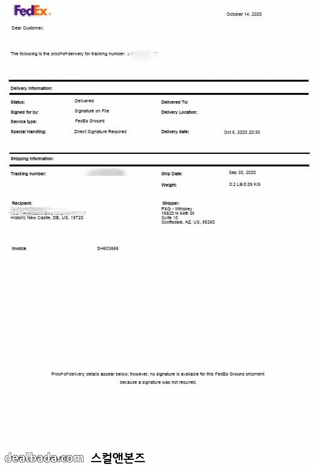 연락해봤더니 pxg에서는 proof of delivery를 보내주네요. 오x이집으로 다시 연락해놨는데