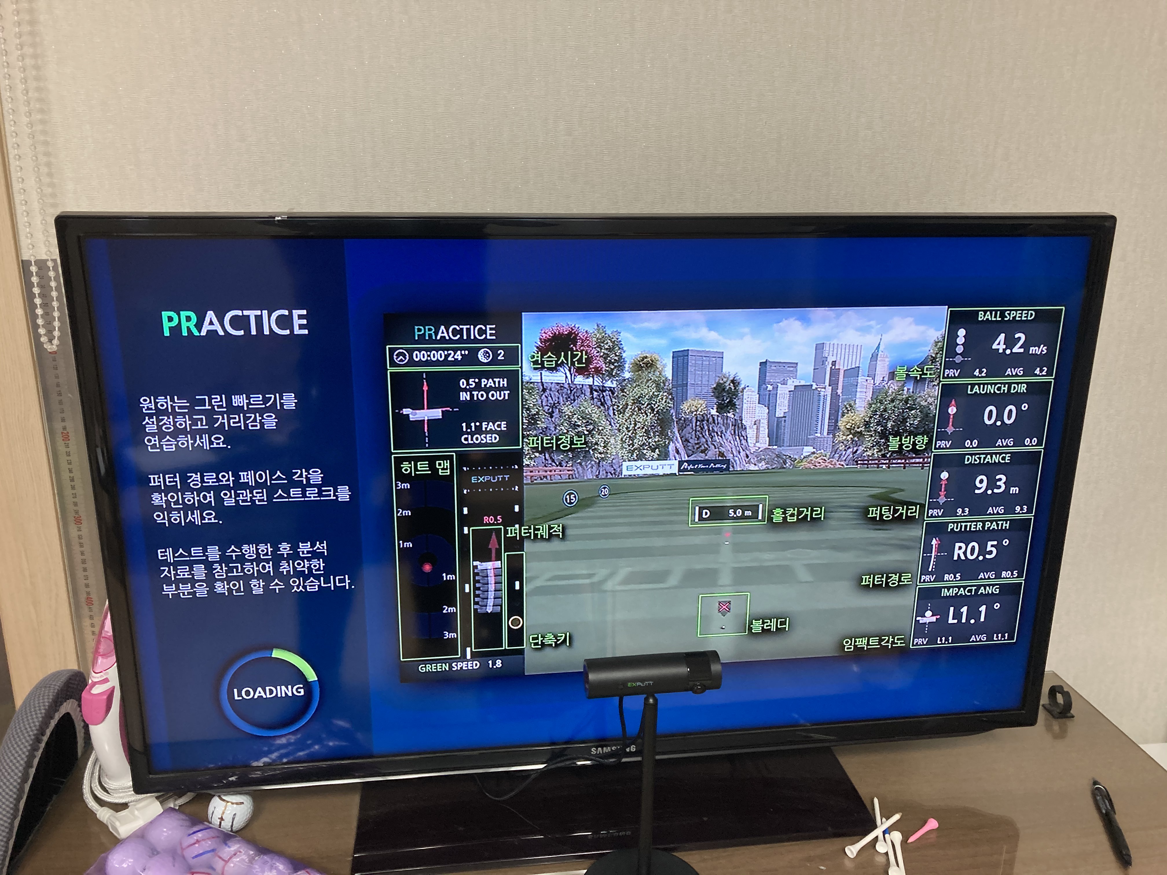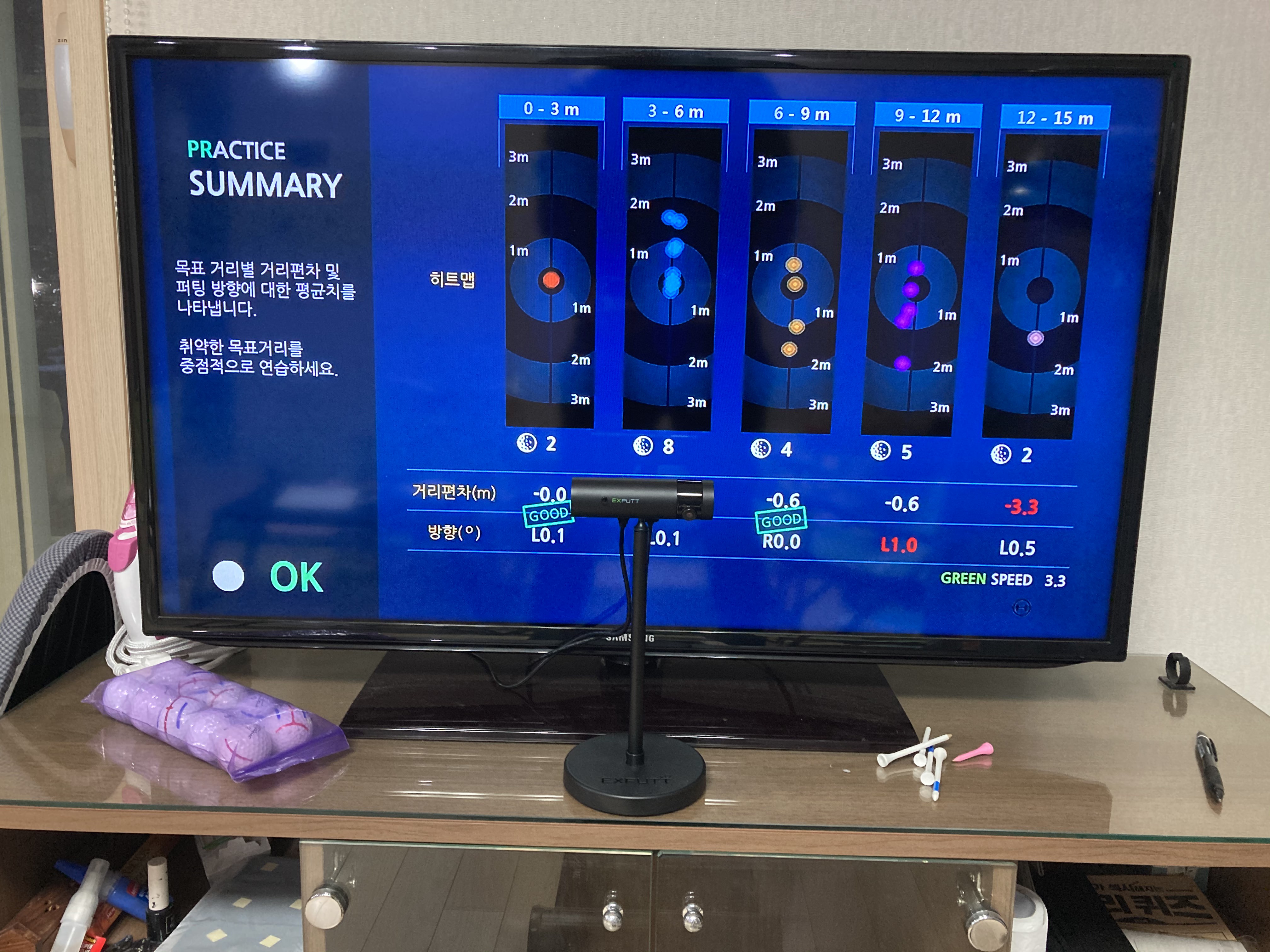 집에 6미터 퍼팅매트가 있는데 거리감은 거의 동일합니다.