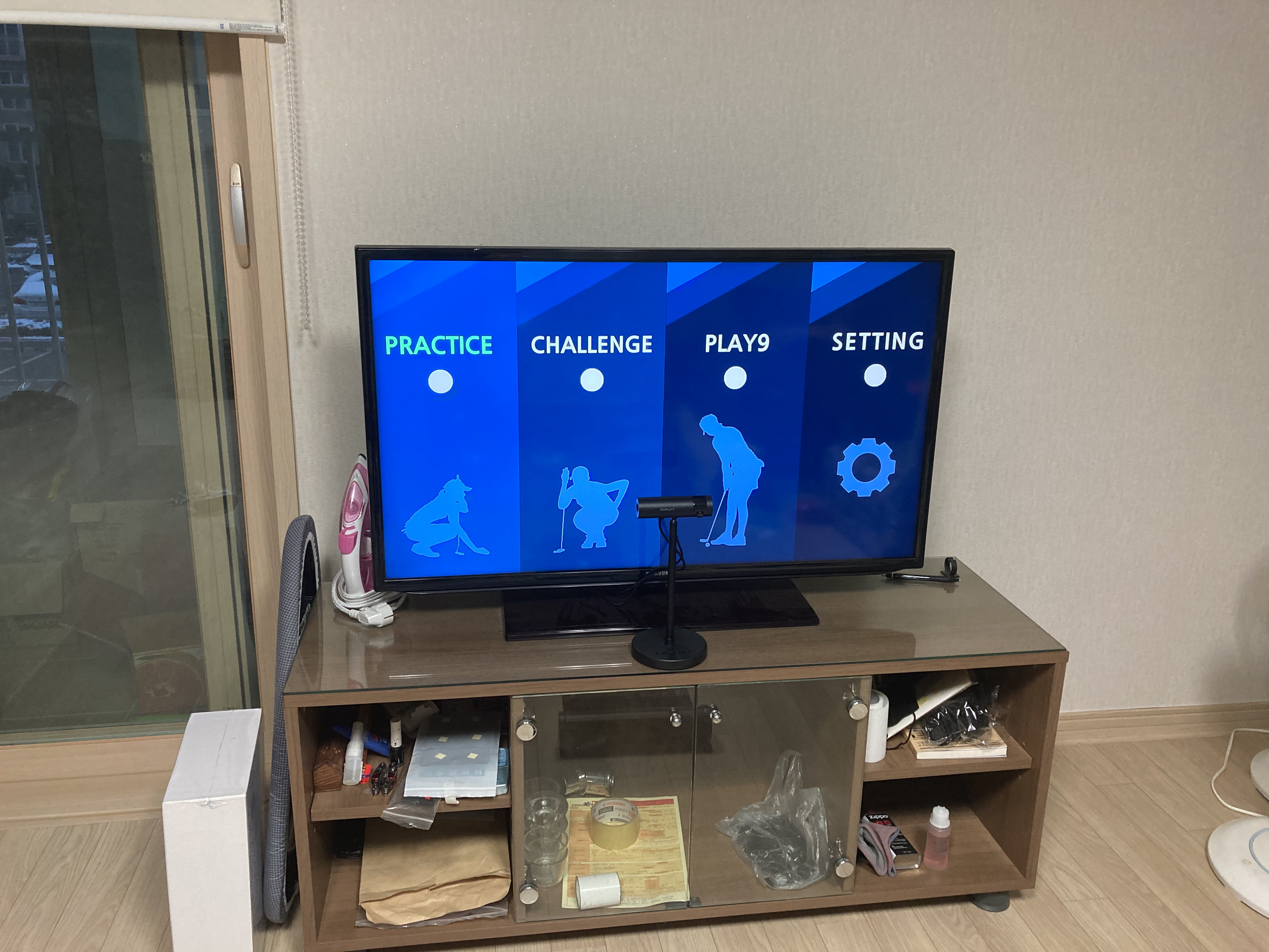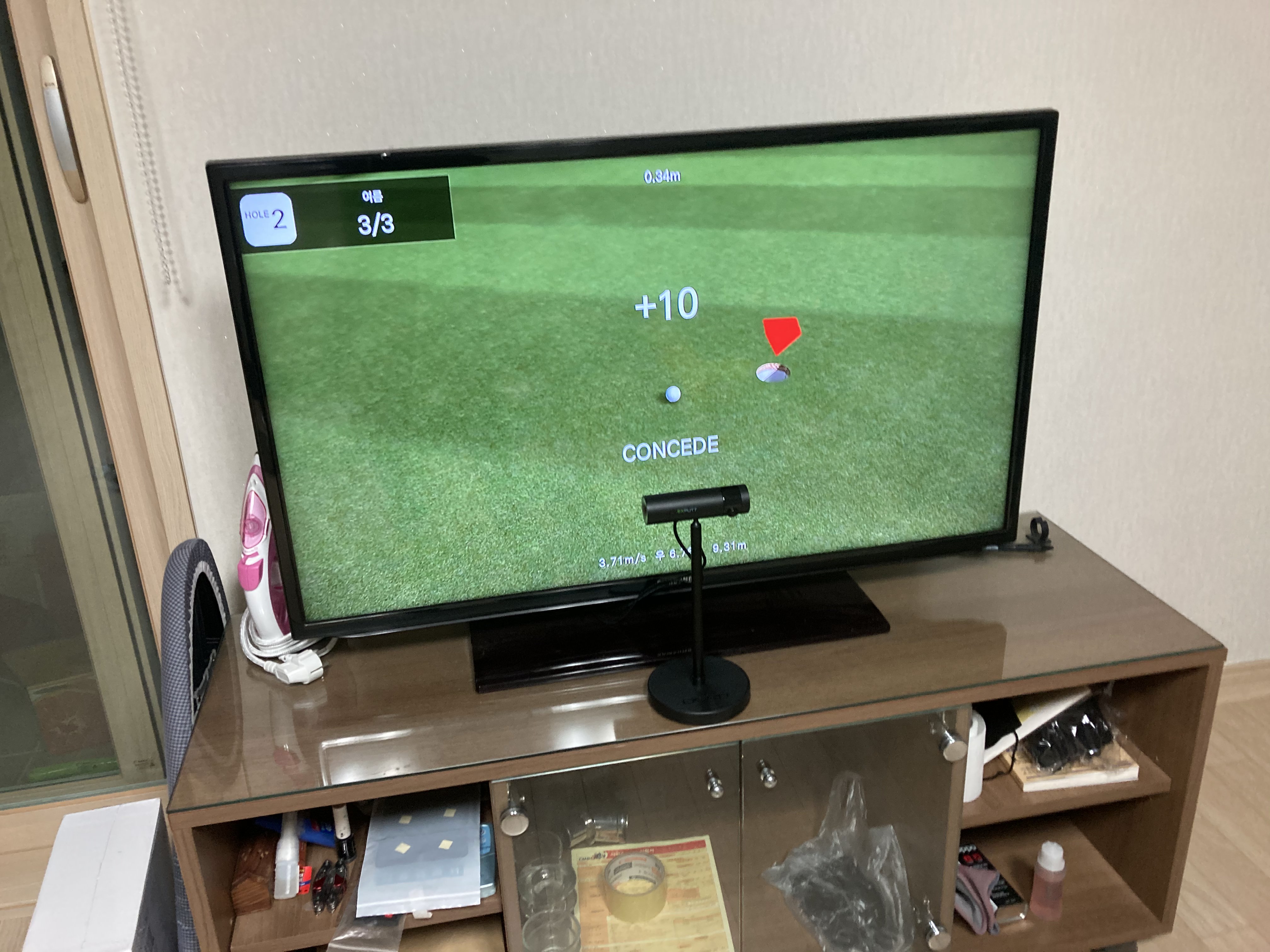 카메라를 티비위에 올리면 좋겠지만 뭐 굳이 그러고 싶지 않아서 TV 앞에 정면에 위치해서 치고 있습니다.