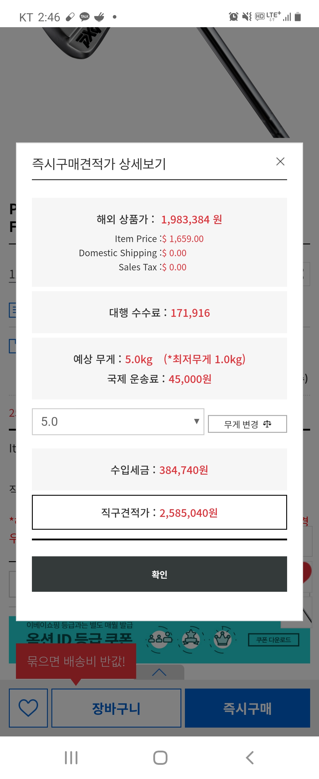 제품값 관부가세 운송비 다 내시고.....수수료 17만원 더 내시는거....... |