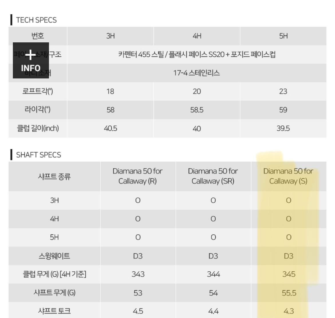 그런데 샤프트 스펙 차이가 많이 나보이네요