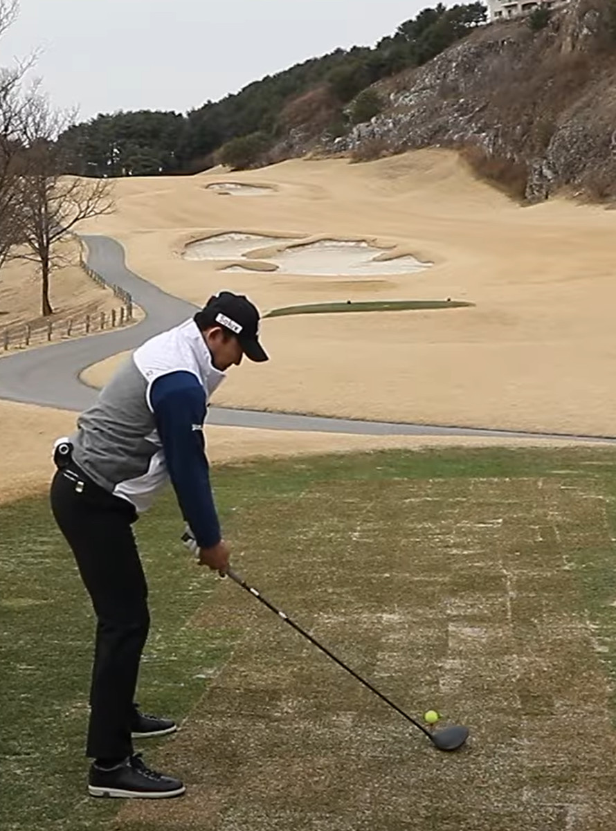 힐쪽에 어드레스 하면 클럽이 휘두름에있어 가파른 다운스윙을 해야합니다 스트레이트나 페이드가 많이 나오고 고덕호 프로님은 퍼이드를 치고있는거 같고 셋업도 페이드로 보여집니다 | ||