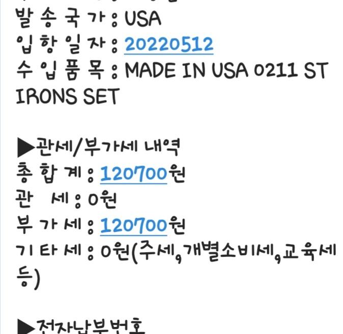 전 관세 부과 되었는데요..... 제 주문서와 비교해보니...