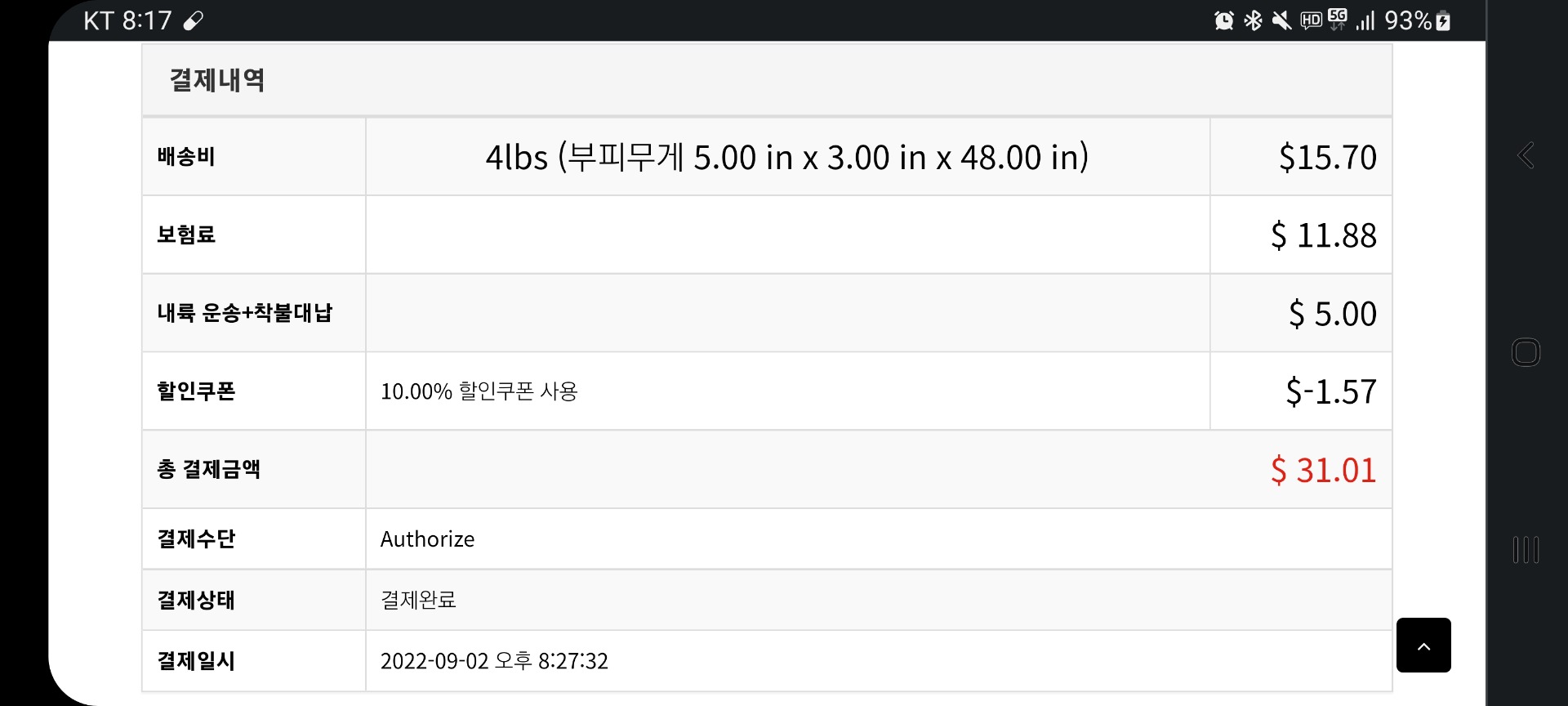 보험료가있었네요;; 검수는 다 수량검수만했네요 |