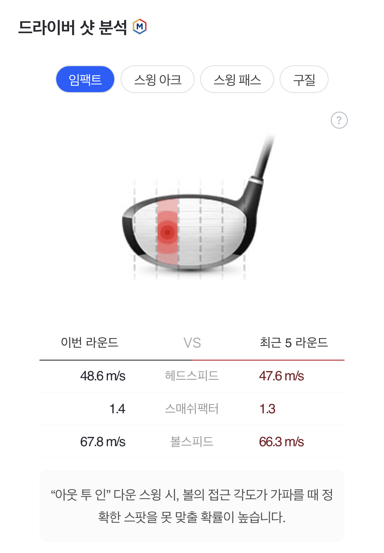 아무리 관용성이 좋아졌다해도 중앙이 아닌데가 타점이 되면 비거리도 줄고 여러 변수도 출발각 정도 사이드스핀 정도가 일정하게 나오지 않고요.