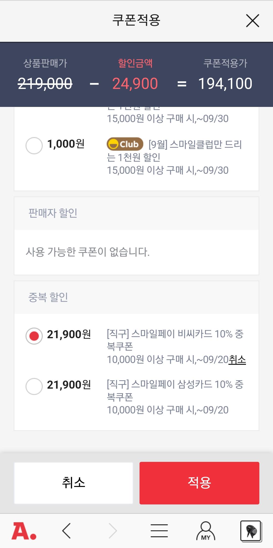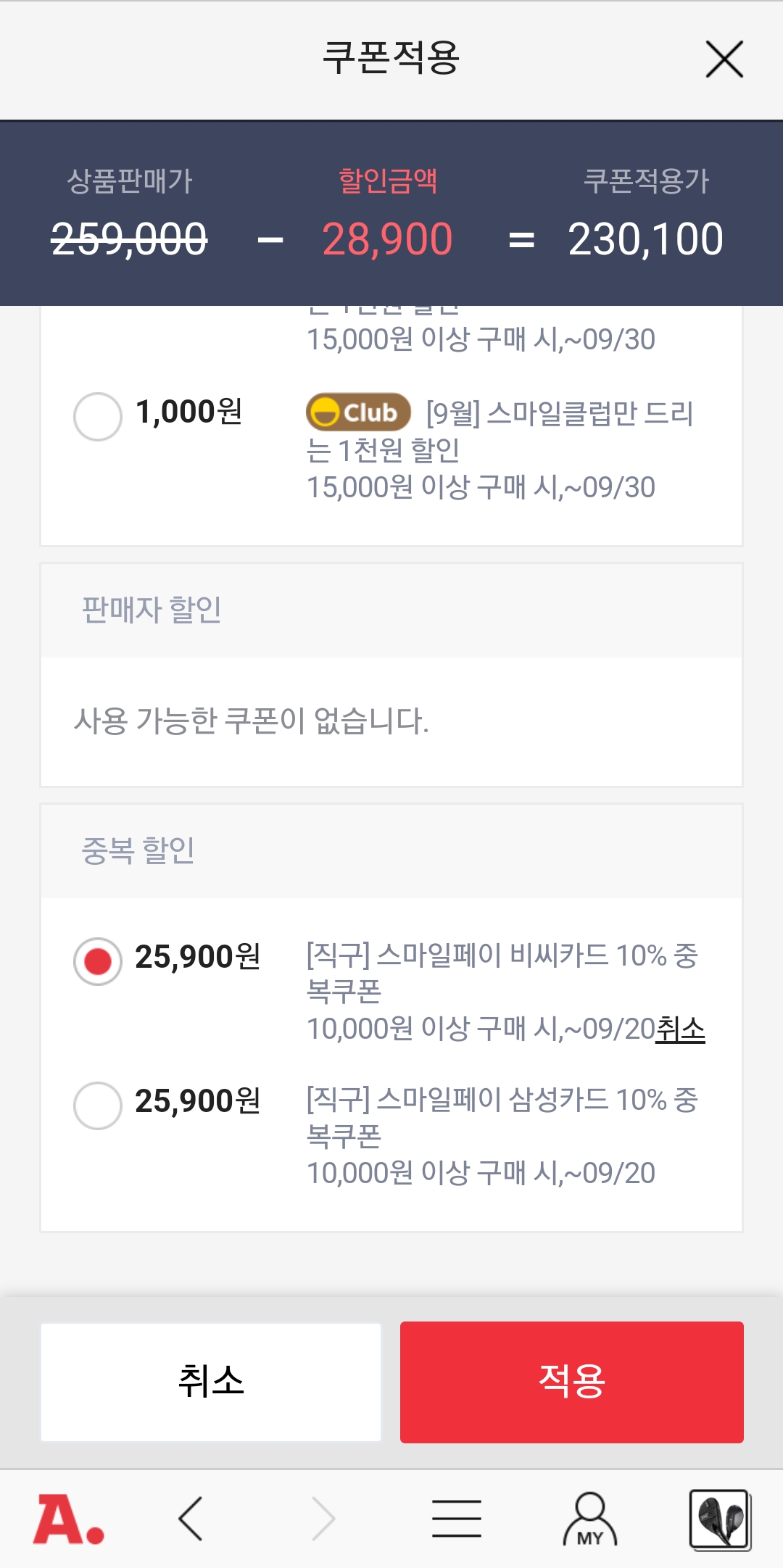 지마켓은 결재단계에서 선택하셔야합니다 |