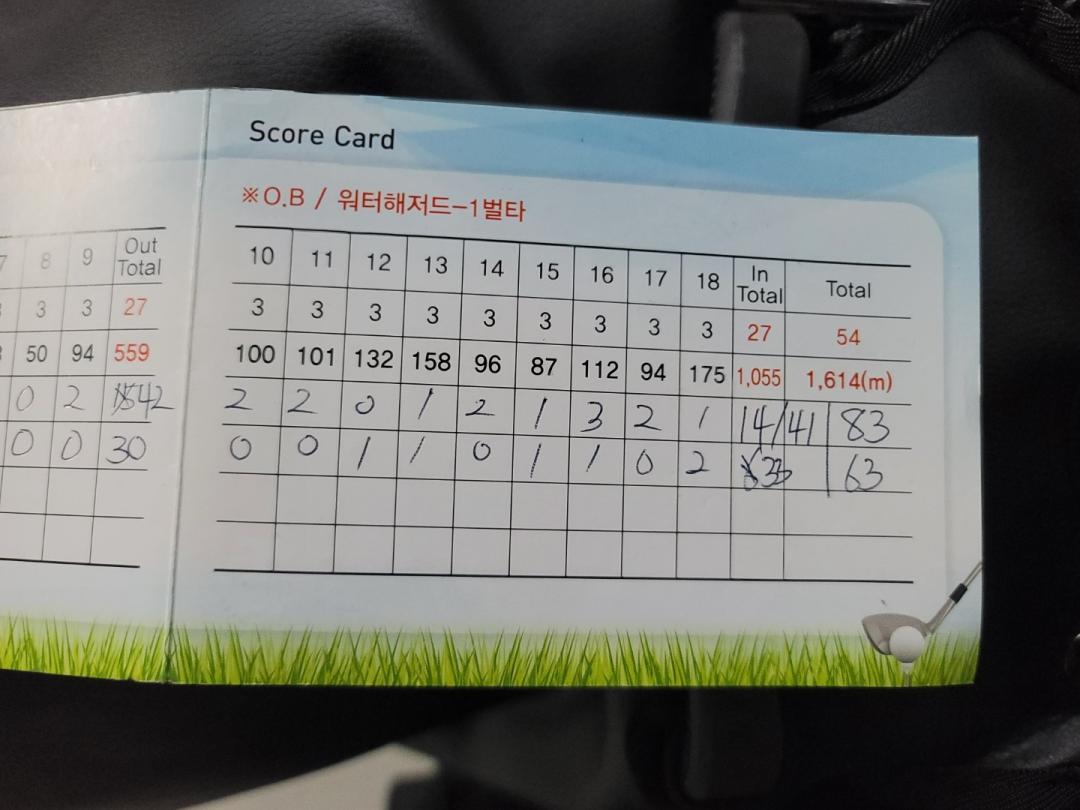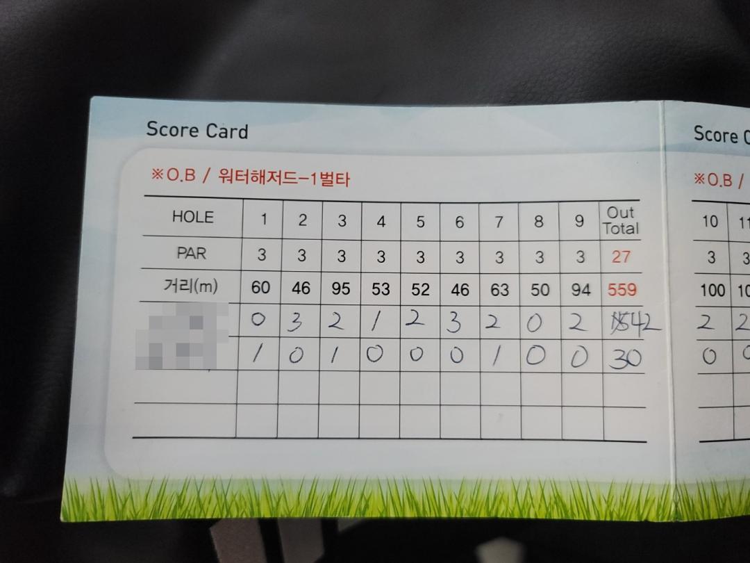 그리고 카트엔 스코어카드도 작성할 수 있게 카드랑 볼펜이 비치 되어있어서 한번 적어봤습니다.​