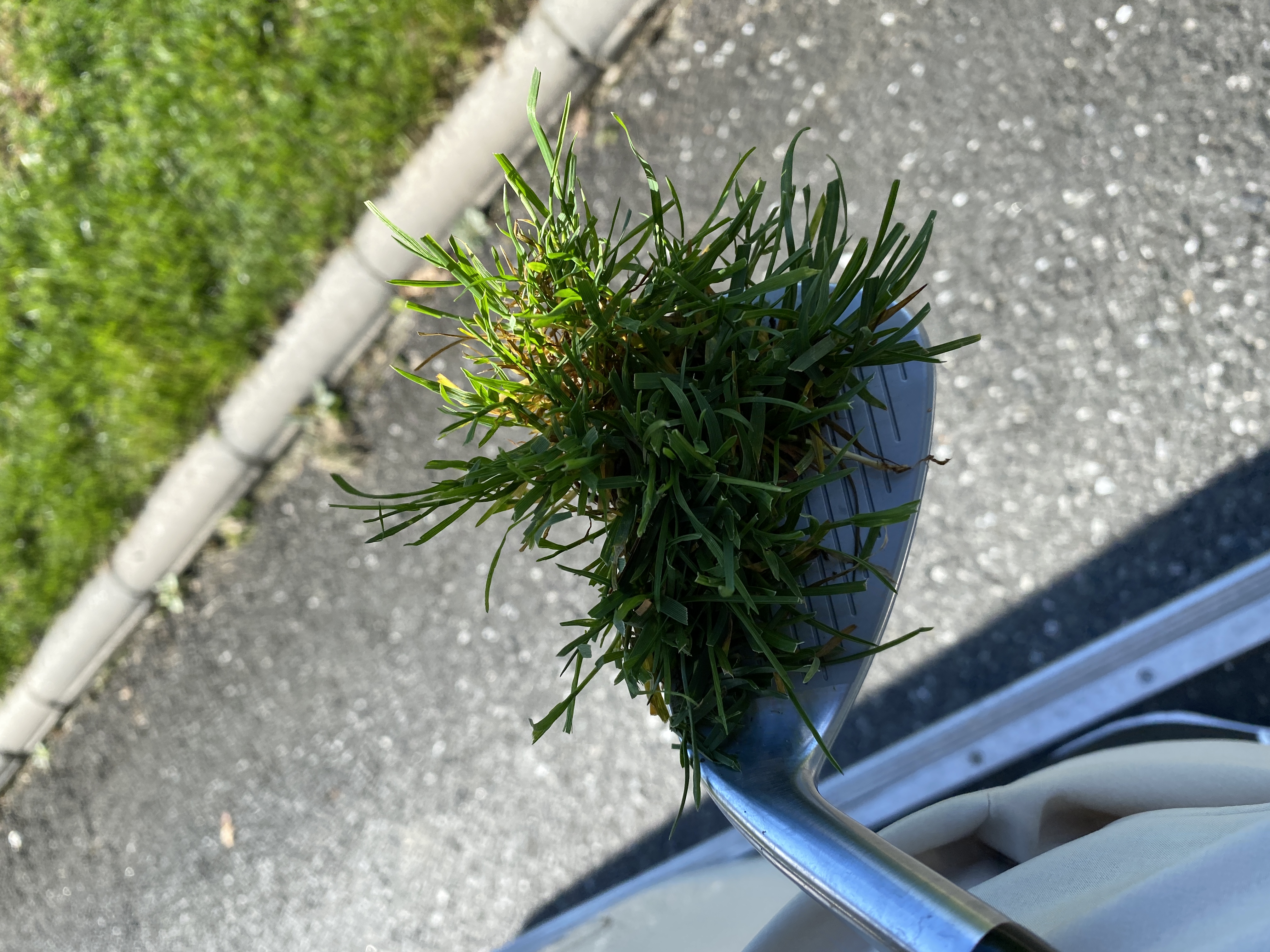 아이언이 이제 다운블로가 되는지 이제 땟장이 좀 떠지네요. 세미러프에서 9번으로 친샷인데, 채에 잔디가 이쁘게 올라타서 한번 찍어봤네요. 1M정도 붙여서 버디했네요. 원래 안전빵으로 치는 편이라 버디가 잘 안나오는데 이날은 전반에만 버디를 2개했네요. 9홀 버디 두개는 처음. ^^