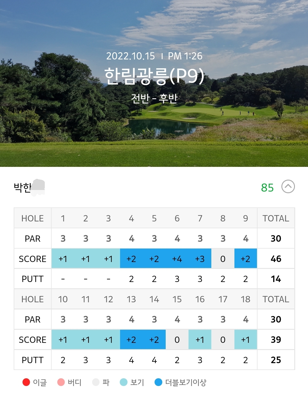 오늘 파3 한림광릉cc 9홀 2바퀴 돌고왔습니다.